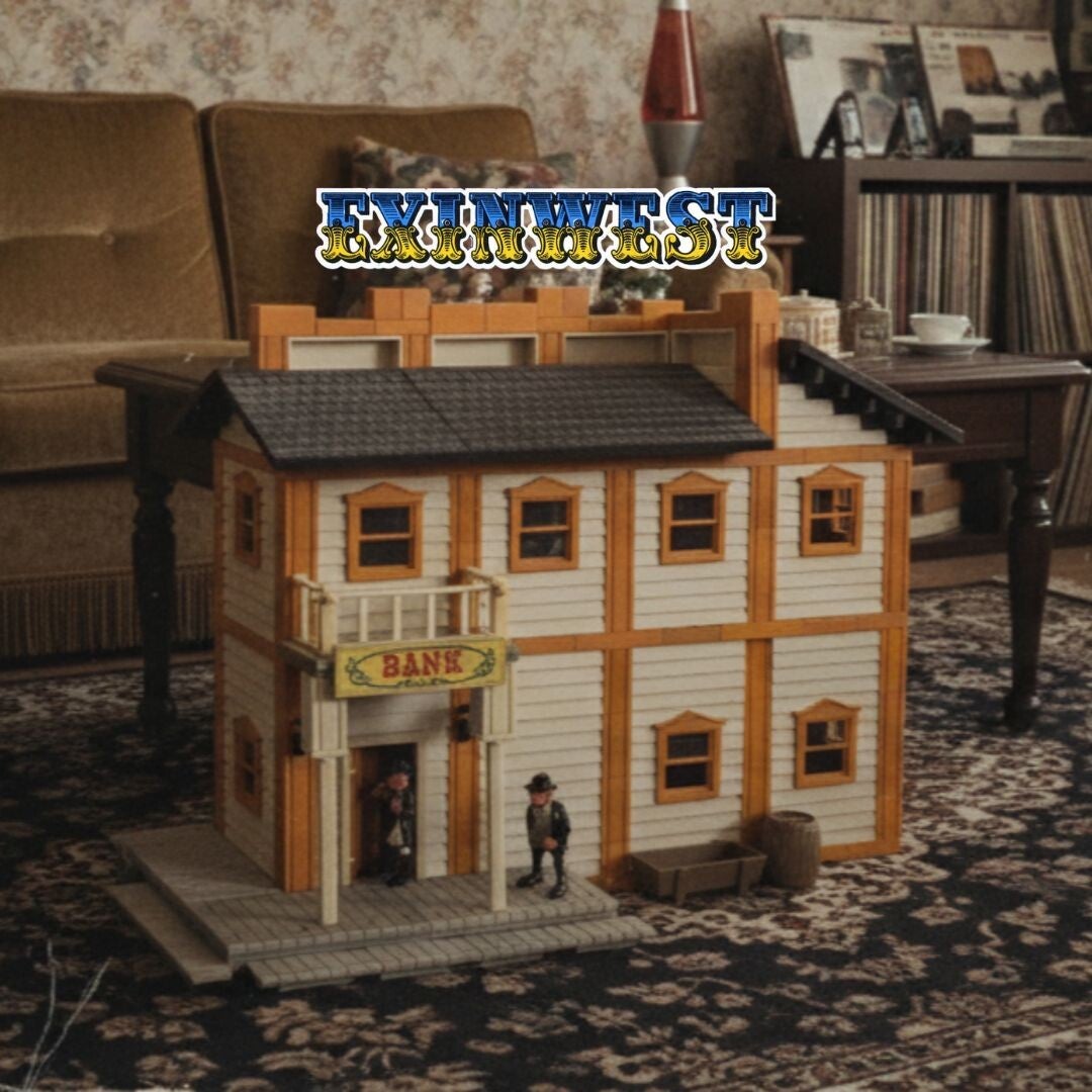 El Banco (BANK) es uno de los edificios más icónicos de la serie EXIN WEST. Representa una construcción típica del Oeste norteamericano con fachada elevada, porche delantero, puertas abatibles y ventanas modulares.